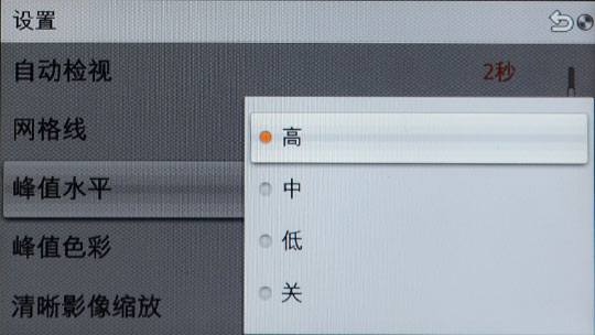 峰值显示设置(先将对焦设成MF才可以设置峰值水平和颜色)