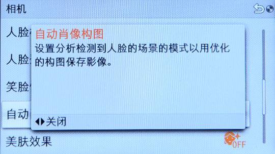 2.自动肖像构图同样我们在SLT-A57的评测中介绍过,该功能与擅长自拍的NEX-F3搭配非常合适。当用户拍摄一幅含有人像的照片时,该功能可以识别人脸,通过人脸检测技术并结合部分场景创建一个以动人肖像为核心的新画面构图。另外该功能与清晰影像缩放技术相结合,重新剪裁构图的图片保持原有分辨率。