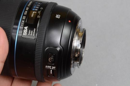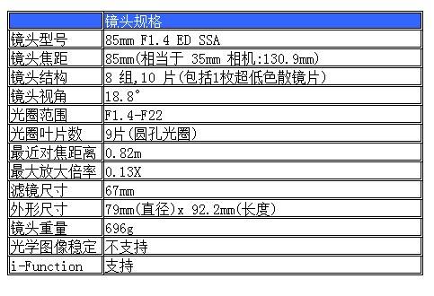 此外85mm F1.4 ED SSA也是一款i-Function镜头,i-Function镜头是将相机中重要的专业设置和参数调节集成在镜头上,通过镜头的i-Fn键可以快速在光圈、快门、感光度、白平衡、曝光补偿等模式间进行切换,随之转动参数调节环可以调整功能参数。