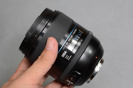 三星85mm F1.4 ED SSA是目前NX镜头群中最粗壮、最重、最大光圈的镜头,当然售价也是最高的,这支镜头与18-200mm一样最大的问题就是;偏大偏重,纵然与旗舰NX20搭配,依然“头重脚轻”。光学素质上来看,这款镜头表现非常不错,焦外比较柔和,焦内锐度很好。从使用角度来看,这款镜头目前只能搭配三星APS-C画幅NX相机,视角偏小,更倾向于大光圈中长焦镜头,作为人像头要注意拍摄距离,不然只能拍“大头”了。拍摄小景深题材,这款镜头1.4大光圈足以胜任,不过还是要注意拍摄距离,这款镜头最近对焦距离达到0.82m。