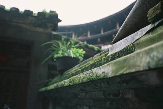 不知何处青苔绿,细雨悄落。那是春痕,别过午后客家楼。