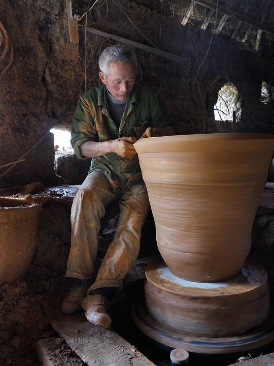当师傅用那双略显粗糙的手,抚摸着还未成型的陶土时,仿佛是一位慈爱的母亲在轻抚刚刚出生的婴儿,那么的细致,那么的轻柔,以至于当每一个购买了这种陶器的人,在抚摸时,甚至都可以感觉到,工匠们有力的拇指留下的印记,而那就是一种传统手工艺品所能具有人间烟火的气息。