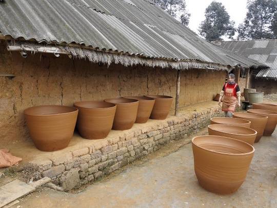 背光一侧屋檐下,是一排排正在阴干的土陶,走进看来,还可以看出,工匠们在制作时抚摸的痕迹,仿佛件件都是那么独一无二、与众不同。