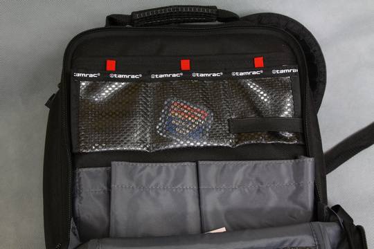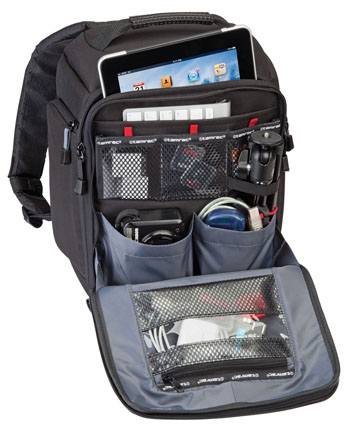两个大型随身用具口袋适合摆放例如固定镜头的相机(佳能G12等备机)和迷你ZipShot三脚架。两个口袋后面有个存储层可以放置键盘(平板电脑或上网本的外接键盘)