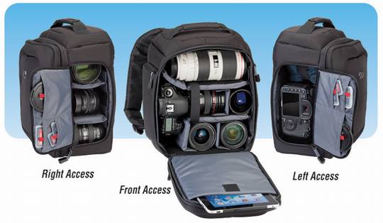 天域(Tamrac)Zuma 7系列5727双肩背包在快捷性和保护性上都很重视。外层面料为强韧的耐磨弹道尼龙,内衬光滑的尼龙面料防止吸附灰尘。这款摄影包适合携带单反数码相机配备长达6.5英寸的镜头、额外的镜头、闪光灯和iPad或10英寸屏幕的迷你电脑。三种快取方式方便使用者快速取出相机等物品,再加上轻巧的紧凑的的外形,非常适合经常使用平板(上网本)的摄影爱好者。