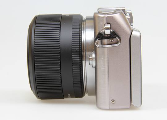 虽然镜头和机身颜色不一样,但是整体的体积比还是不错的,相信放在更专业的其他机身上,尤其是黑色的机身上感觉会更好,但是很可惜,这颗镜头的体积不大不小,也不能归结为饼干镜头。