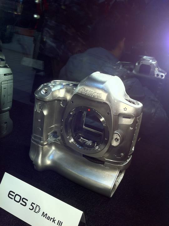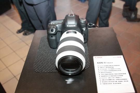 时隔1262天,佳能正式发布了依然性能强劲的5D MARK II的后续机型5D MARK III,无忌小编亲临发布会现场,第一时间试用了横空出世的5D MARK III,由于现场不让进行插卡拍摄,因此这里先放出一些现场拍到的真机图片,5D MARK III预计于3月底开始发售。
