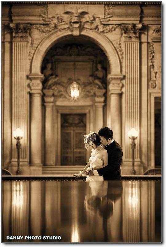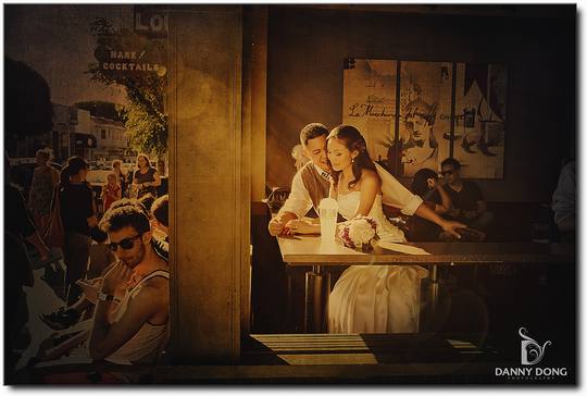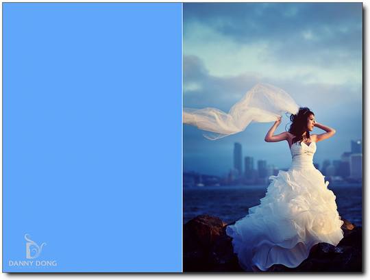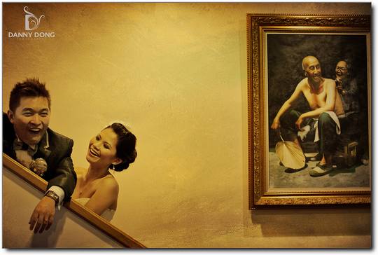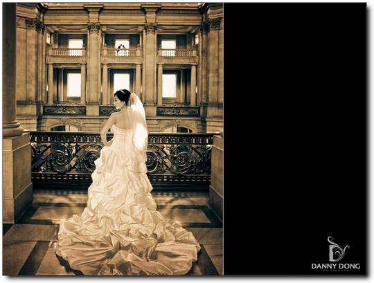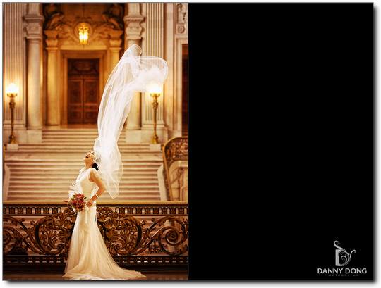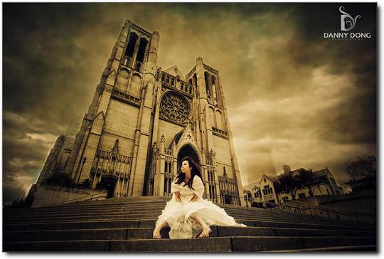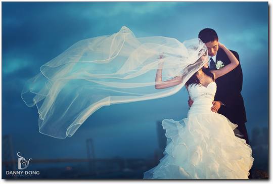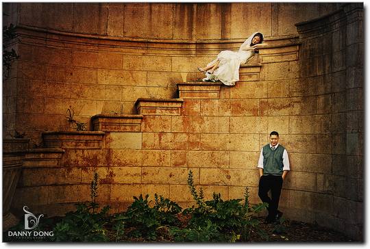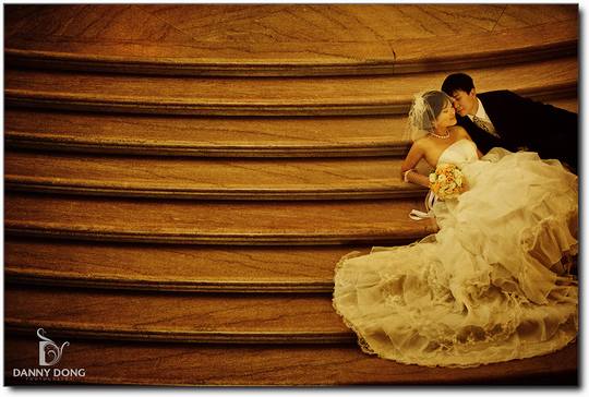 5。婚礼当天的婚纱照portrait部分,通常只有一个小时的时间,最能考验一个摄影师就地取材的能力。尝试一下跳出传统的概念,用人造光,用环境光,用建筑的线条,展示一些与钟不同,唯美的,浪漫的,有着摄影师个人style的,能让人记住的婚纱照。 往往这张照片,会是客人愿意花$500美金买一个大的油画放大挂着家里的照片