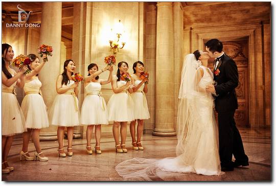 先说说我自己的摄影路。1999年,上海市举办了“世界摄影家看上海活动”,当时我在读大学,有幸成为那次活动的志愿者,英文翻译,每天可以跟着大师们走街串巷,从那以后,我也迷上了摄影,幻想着有一天,我也能端着象大炮一样的相机。工作后,我变成一个摄影发烧友开始,泡论坛,2003-2004年在无忌潜水学习拍摄人像,还记得当时听蓝,元素,柔软等大师的贴子给了我很多启发。2005年获全奖到美国留学攻读MBA, 把大量的课外时间都泡在了摄影系里,开始学习黑白,彩色。开始约模特,拍美美,拍模特,偶然的机会担任了一个以前拍摄的美女模特的婚礼摄影师,有了第一个portfolio。 毕业后找到了加州硅谷的工组,平时上班,周末开始接活,干了两年的兼职婚礼拍摄让我对这个行业有了充分的了解。2年前终于辞去工作,成为了一名职业婚礼摄影 师,终于把自己的爱好做成了职业。当时父母很反对,不断地劝我,不要放弃稳定的工作和职业规划。但我还是瞒着父母辞去了工作。一年后,当我拿着印出的一本本相册,告诉他们在美国从事艺术工作也是一份很好的职业的时候,他们的态度虽然妥协了,但还是半信半疑,还把我的简历给了国内的猎头公司,劝我海归。