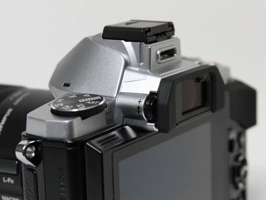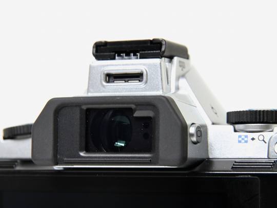 E-M5 内置了高品质的电子取景器,与备受好评的VF-2一样,具备144万像素,并拥有100%视野率、1.15倍放大倍率。在EVF电子取景器的右侧有一个切换取景器的按键,而左侧则是屈光度调节滚轮。