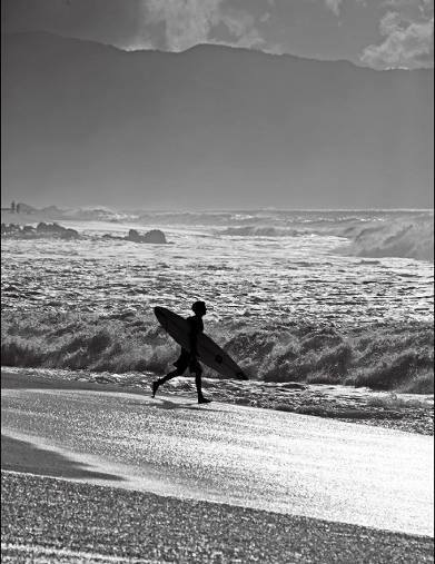 这位冲浪手定定地站在那儿好几分钟看着他即将投入的大海,时机到的那瞬间,他长吸一口气扎往水里。从他的静止酝酿和在海里的流畅动作,让人感受到他对冲浪的专注和热爱。 1/6400秒,275mm,F/8,ISO 400,曝光补偿-0.3
