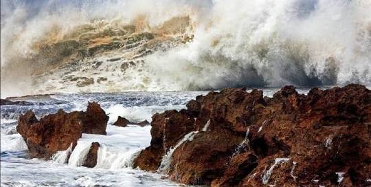 夏威夷瓦胡岛 我希望用快速凝结画面。礁石不是只有一种颜色,它们可以呈现红、黄、咖啡等各种颜色的和不同肌理。同时,海浪涌卷的橙色泡沫这时候呈现的是如一睹墙压过来。不但石头嶙峋,浪也有硬力。