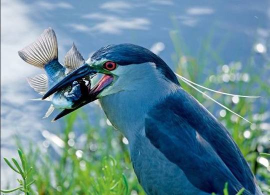 夏威夷瓦胡岛 // 灰鹤猎食 在海岛的一条小河的出海口附近。当地摄影师带我前往拍摄时,进超市买了些面包。我当时纳闷,鸟儿会来吃面包?后来才知掉,那些是给鱼儿的诱饵。鱼群发现面包游向水面,这样就给灰鹤机会逮住它们。