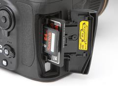 D800和D4一样都使用了双卡槽设计,但是D4的是CF与XQD双卡槽,而D800的是CF与SD双卡槽。SD存储卡近年来容量和存储速度都在不断提高,而价格却逐渐普及化,即使在便利店和超市都能买到,实在是非常方便。