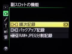 ![]() 可以分别在两张卡中记录RAW 和JPEG |