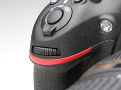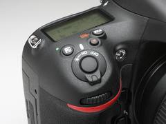 机顶部位的设计与D4十分相像,两者都有较圆滑的机身,D800的铭牌印刷在左上角的倾斜面上。特别是快门按键周围和取景器边缘一带,与上一代D700有较大的设计差异。而以往在手柄处位置设计的红色三角形标识,也替换回更为细长的造型,简约而突出。