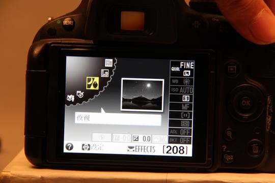 D5100相机具备特殊效果模式(D7000与D3100不支持),可针对静态影像和短片进行设定。拍摄或录制开始前,可通过镜头在显示屏上显示特殊效果,以便用户实时确定想要的拍摄效果。用户还可给短片添加特殊效果。采用此模式可满足用户表现创意拍摄的意图,更好的表现自我独特风格和创意性。特殊效果模式支持7种效果模式,包括可选颜色、彩色素描、模型效果、夜视、剪影效果等。该功能等于将原来润饰菜单彩色素描、模型效果以及可选颜色直接当做拍摄模式直接拍摄而非机内再处理。