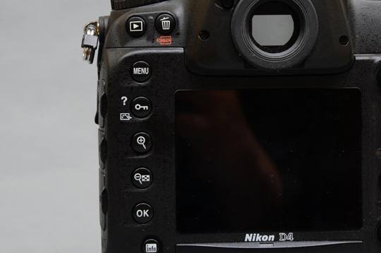 尼康D4除了用于AF点选择的圆形多重选择器外,增加了(水平/垂直)两个副选择器(类似佳 能、索尼的焦点选择摇杆),这点改进非常好,要知道五六十个对焦点,单点挪到想要的位置非常需要这种摇杆,令操控更加便捷。不过焦点锁定拨杆从圆形多重选择器上独立出来,个人觉得有些浪费空间。