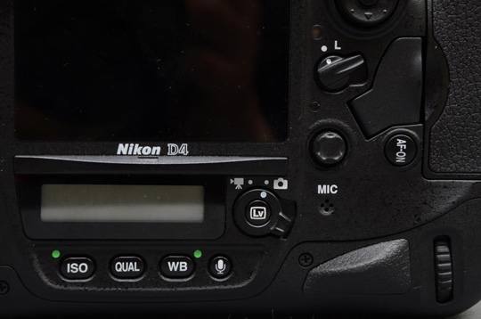 另外D4专门针对静态拍摄和动画在实时取景(LV)按钮基础上增加了切换拨杆,(D7000等采用LV划杆+录像按钮设计)。在摄像模式下按下快门,可以获得16:9宽高比的静态影像。小编觉得这样设计过于繁琐,事实上按下LV启动实时取景模式后,按下快门为拍照/按下录制按钮是摄像(画幅比例自动切换16:9),录像过程中按快门拍摄16:9图片,这样反而简单很多。(尼康最新D3200的设计就比较简单,只有LV和录制两个按钮)