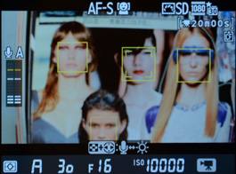 尼康D4对焦区域模式分为单点(S) 动态区域(9点 d9;21点 d21;51点 d51)3D跟踪(3D ),自动区域(Auto)若侦测到脸部照相机将优先人物拍摄对象。该人脸识别,局限性较大,不能支持多张脸,在取景器中仅能看到多点在人面部合焦。