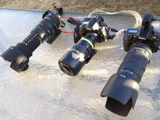 Sigma镜头: 12-24两枚; 85 1.4 HSM; 50 1.4 HSM; 30 1.4; 20 1.8; 120-300 f2.8 OS; 50-500,以及适马1.4x,2.0x增距镜。
