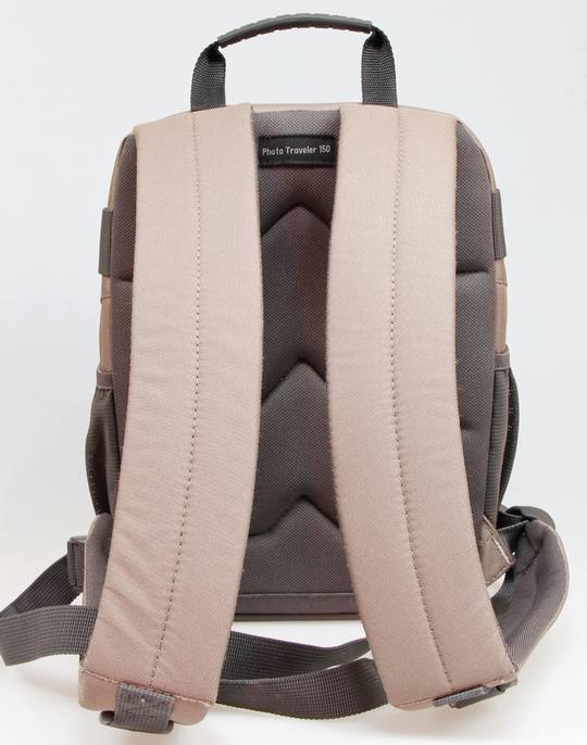 Photo Traveler 150背面是标准的双肩包,此包继承来乐摄宝传承的高品质做工,短期背负还是很舒适的,但是毕竟包的尺寸偏小,背带的厚度不能和大尺寸背包相比。