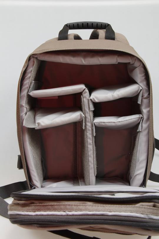 最重要的内部隔舱,这个空间里你可以容纳紧凑型单反套机或者微单套机、2-3个镜头或者1个闪光灯+2支镜头、配件等。你可以随意更改内部存放格局,十分方便。