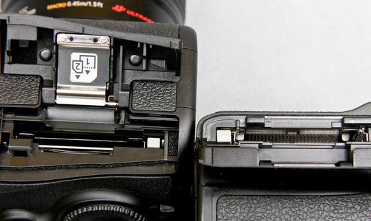 卡槽处没有什么悬念,5D III终于加入了CF卡和SD卡的双重支持