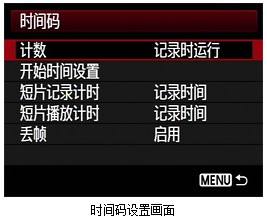 时间码是管理短片记录时间的功能,将时间信息添加到短片数据中。通过活用时间码能够在编辑多台相机拍摄的多个短片数据时同步短片,提高编辑工作的效率。EOS 5D Mark III使用SMPTE(Society of Motion Picture and Television Engineers:美国电影和电视工程师协会)制定的规格为基准,以时/分/秒/帧的形式表示时间码。时间码的记录方式有两种可选,“记录时运行”只在短片拍摄期间计时,“自由运行”不管是否正在拍摄,时间码都计时。