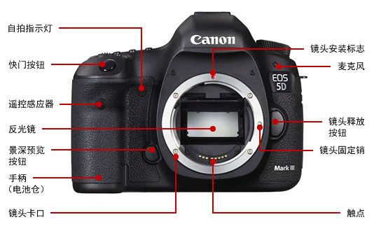 EOS 5D Mark III的整体外观风格依然没有太大的变化,佳能相机的圆润外表在EOS 5D Mark III上体现的更加鲜明,我们首先来仔细对比一下EOS 5D Mark III与EOS 5D Mark II的外观到底有什么样的变化。