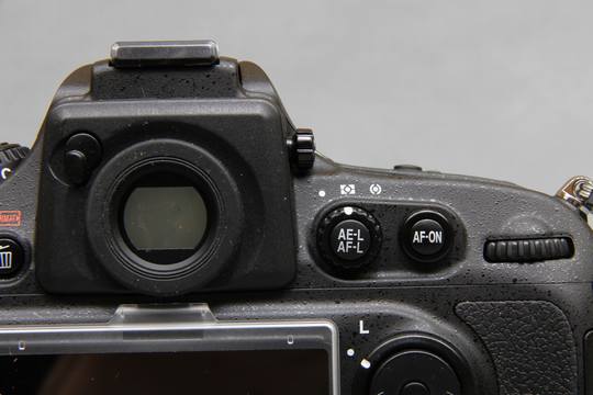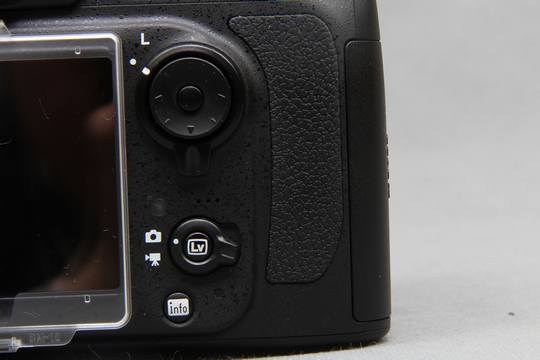 相机背面左侧按键,与D700类似,不过放大和缩小按钮像D5100那样,上下颠倒过来。保护按钮(小钥匙)增加了直接访问优化校准,无须进入菜单。相机背面右侧,上半部分与D700相同,而多重选择器下面出现了变化。原来AF区域模式选择器的地方变成即时取景选择器。按下LV后拨动不拨杆可选择拍照或短片。当然短片下也可以拍摄16:9静态照片。