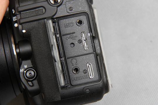 接口方面,尼康D800正面与D700类似,胶皮盖下为闪光同步端子和10针遥控端子(后者与连接GPS附件有关)。侧面接口为外置麦克风接口、USB、耳机接口、HDMI。D800(包括D800E)是第一个支持USB 3.0的数码相机(旗舰D4仍采用USB 2.0),尼康在这款相机上采用高速接口也是考虑到,3630万像素大文件,能够更快速传输。D800内置有外置立体声麦克风输入的接口。将紧凑的立体声麦克风ME-1 安装于照相机,可清晰录制声音并同时大幅减少机械噪音。外置耳机接口使您能有效对音频进行独立监测和控制。音频级别指示器提供对音频级别的可视确认方式,麦克风灵敏度具有20级的精确控制。D800可通过HDMI在外置显示屏上同步查看即时取景输出并录制无损压缩视频。
