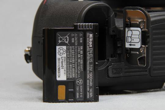 续航方面,尼康D800采用EN-EL15锂离子充电电池(7.0V 1900mAh 14Wh),与D7000、尼康1V1相同,根据CIPA标准一次充电可拍摄约900张(D700:约1000张)。存储方面,D800支持CF和SD存储卡,CF支持最新的UDMA 7。SD则与SDXC 和UHS-I兼容。双卡设计可以分别在两张卡中记录RAW 和JPEG 文件,同时在两张卡上记录相同的数据以进行备份等。当然临时借用他人使用时也可以分别存储,以免混乱。