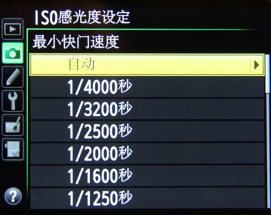 除了以前的最大感光度和最小快门速度,尼康在“最小快门速度”新增了一个“AUTO”。这个功能可以根据镜头焦距、相机自动来设定感度自动控制开始工作的快门速度低速界限。该设计在使用变焦镜头时,非常方便,以前只能设固定值,但固定值只能去适应长焦端。AUTO则不同,镜头拉到望远端、快门速度就需要更快一些;广角端则用不着那么高速的快门。根据镜头的焦距信息、相机自动设定不会产生手抖的快门速度(手震界限原理,一般快门为焦距倒数)。