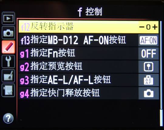 另外这个功能是利用步进电机来改变光圈,可以使得光圈在平滑地改变的同时降低驱动声音,如果使用前拨轮调节光圈会有“咔”响声。操作也很简单,在菜单自定义设定g2中指定预览按钮“电动光圈”打开 。按下Fn功能键、光圈变大。按下景深预览键则缩小光圈。显示是1/3档的步进。从这点看我们也能理解D800的Fn按钮和景深预览按钮为什么设计得更近。