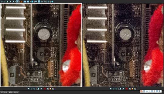 从对比来看,两者噪点表现相近,都是以ISO1600为界限,这样测试结果符合两者像素尺寸相近的硬件表现(4.8微米)。