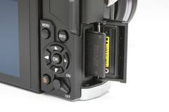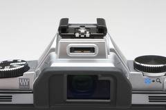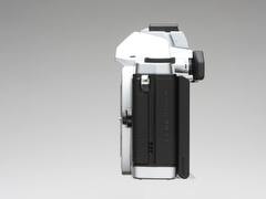 E-M5醒目的突起机顶让人一度认为采用了五菱镜取景器,在取景器上面可以看到热靴和扩展接口,还有左右两个立体声麦克,使得机顶位置很高,凸起很高一部分,好似DSLR的样子。