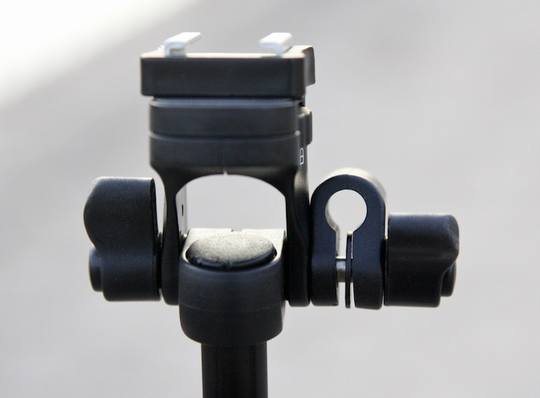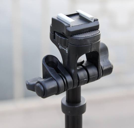 虽然标称最大承重为2.5kg,但是在实际使用的过程中,笔者不建议伸展到最大高度安装闪光灯,还是能感觉的架子不算太稳,尤其是各家顶级的闪光灯,收缩一段使用效果较好。
