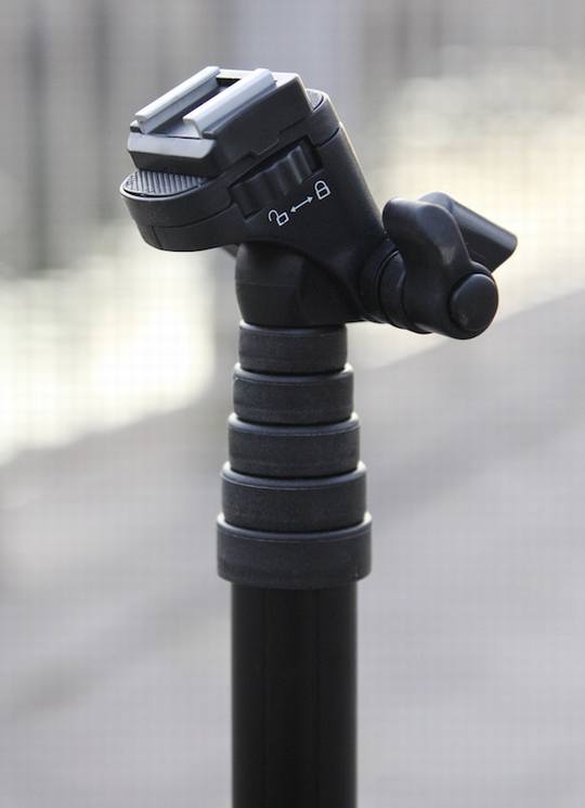 中部的旋钮设计,用户可以随意摆动相机。选择合适的角度然后进行锁紧。