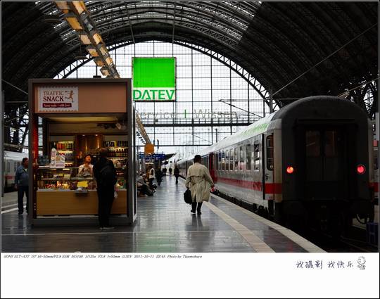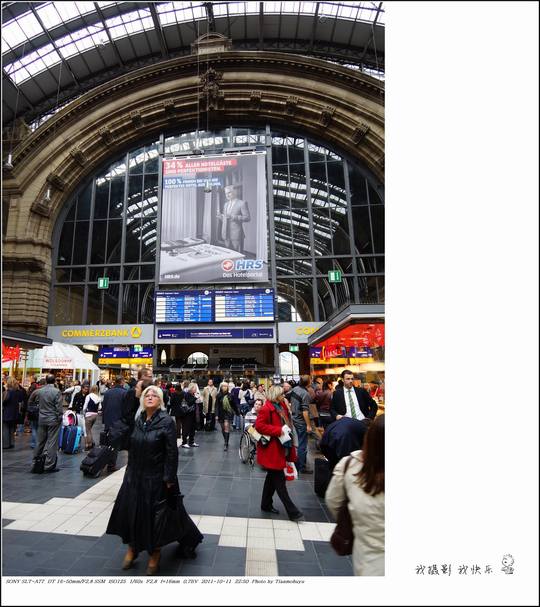 a77 + 16-50,全开光圈效果 这个穿风衣戴礼帽的男子,给法兰克福古老的中央车站又增添了几分沧桑: