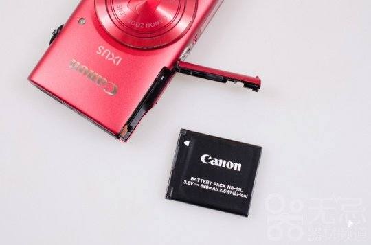 相机的底部是电池舱和存储卡插槽。这台小卡片采用了一块容量为680毫安的电池。这块电池的容量很显然比较小,如果需要长时间拍摄最好再多准备一块电池。