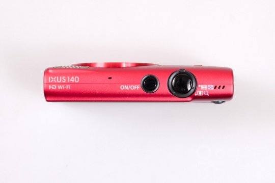 IXUS 140机器顶部也只有两个按钮,一个是电源开关,一个是快门按钮和变焦拨杆。左侧标示了这台机器的型号。