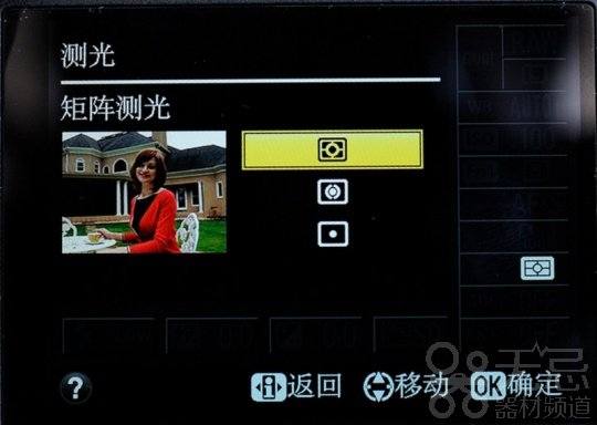 测光模式有点测,中央重点和矩阵测光。也继承了尼康引以为傲的动态D-Lighting功能,可以获得画面亮度更为均匀的图片。