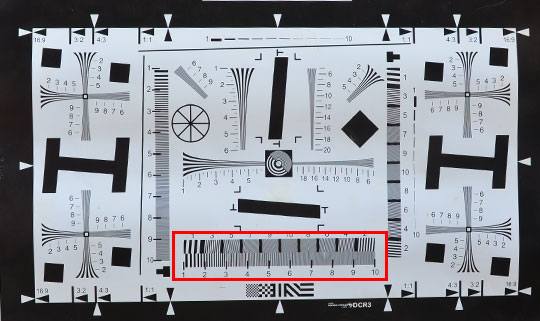 下面编辑进行了简单测试,尼康COOLPIX A对标版上条纹密集的部分进行拍摄。