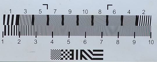 从上面实拍来看,放大至100%后,这款相机“5”以上密度的条纹上出现干扰摩尔纹,即使改变拍摄距离,在高密度的8、9、10上仍会出现摩尔纹。不过大家要注意标版上的条纹是非常密的,相隔一定距离,条纹块在眼里仅仅是一个灰色块。所以现实当中我们遇到如此密度的几率并不高。几天的试用过程中,编辑试拍过服装、建筑并没有出现摩尔纹,所以用户在使用当中不必过分在意,如果遇到可以通过改变拍摄距离的方法来解决。