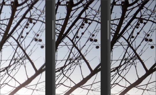 大光比逆光下,我们观察一下树枝明暗交接部分。从图中可以看到这款镜头F2.8全开光圈存在紫边,光圈收缩F3.5后便不明显了。