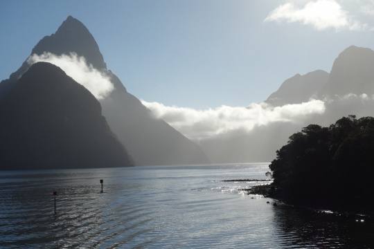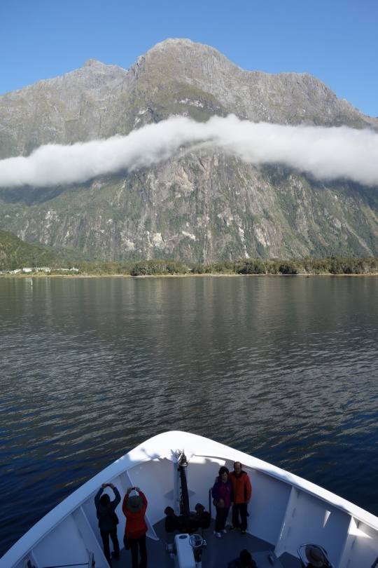 镜湖之后我们驱车赶往码头,乘坐游轮畅游米佛峡湾,米弗峡湾是峡湾风景区中规模最大的峡湾,同时也是最完美地保存了新西兰自然景观的一处峡湾。200万年前,几千米厚的巨大冰川移走后留下幽深的峡穀,灌入海水形成今天的峡湾,其中最长的嵌入陆地40千米。公园内现有14条峡湾,目前只有两条峡湾初步开发,可供人们游览。峡湾两岸是陡峭的岩壁。从海面垂直拔地而起的米特峰和象山高度分别为1692米和1517米,是公园最具象征性的景观。无数条瀑布挂在峭壁上,像天河一样飞泻下来直入大海,其中最大的博恩瀑布落差达160米。距离博恩瀑布不远处的水下观察室可以看到峡湾水下的神秘世界。