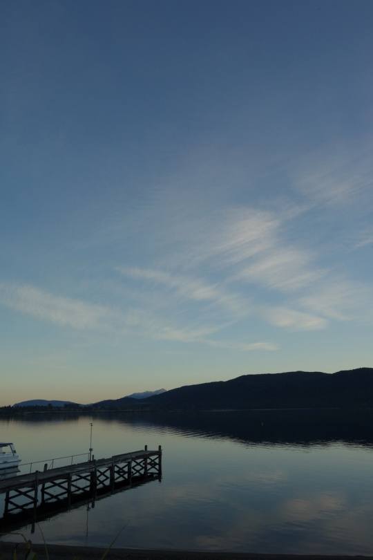 峡湾乘船拍摄结束,一行人乘车赶回皇后镇。大约临近傍晚,我们的大巴车又经过早晨被浓雾笼罩的湖景。此时浓雾早已散去,我们得以一睹真容。静静的湖水倒影着天空金色的残云,与清晨的景象迥然不同,浓雾下的湖水更显神秘,而夕阳下的湖水清透、多彩。