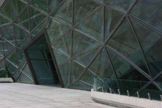 镜面采用了市场上比较常见的绿色镀膜,在日光的反射下可以明显地观察到镜面带有一层淡淡的绿色。