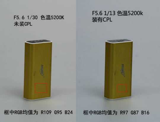 直接对比拍摄原图我们可以看到,在差不多相同的曝光量(因为装了CPL,所以曝光时间稍为延长)、相同的相机色温条件下,装上CPL之后的原图明显比未装时候蓝色明显偏重。但锐度之间的变化则不是十分明显。